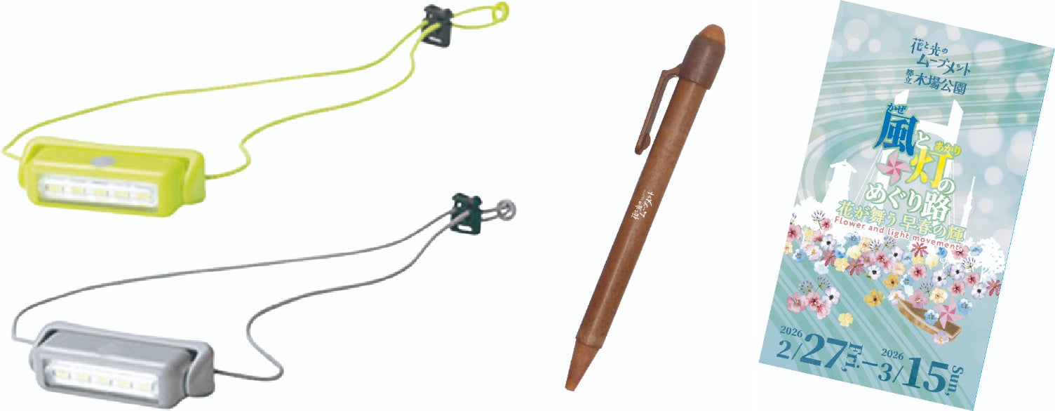 さらに、イベントに関するアンケートにご協力いただいた方に、3種類のノベルティセット(ストラップライト、エコボールペン、早春の花の種)をご用意しています。
