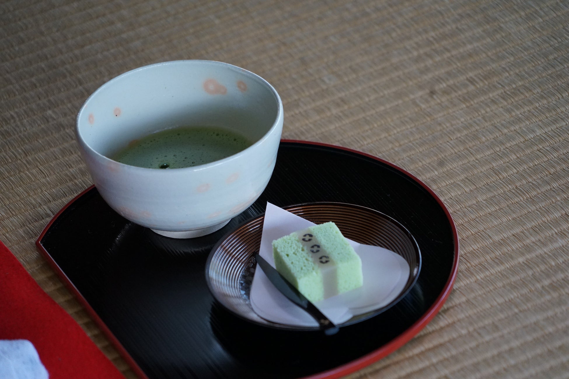 抹茶の呈茶、もしくは季節の粥膳をお楽しみいただきます(約20分)