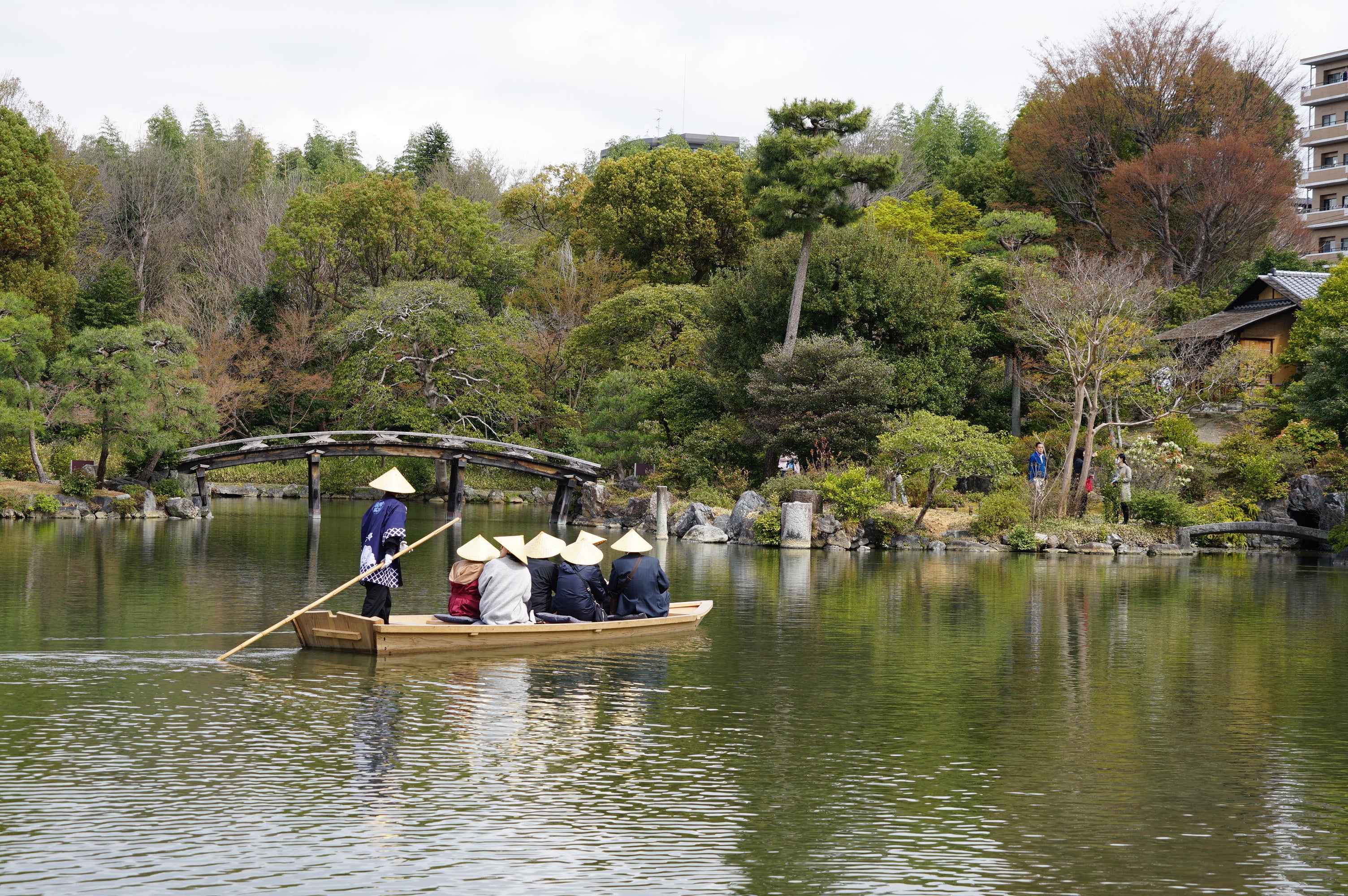 史資料や古資料などを参考に、渉成園オリジナルの舟を造船し、江戸時代の舟遊びを再現。船頭役は東本願寺の僧侶が担い、舟の上からお庭のみどころをご案内します。