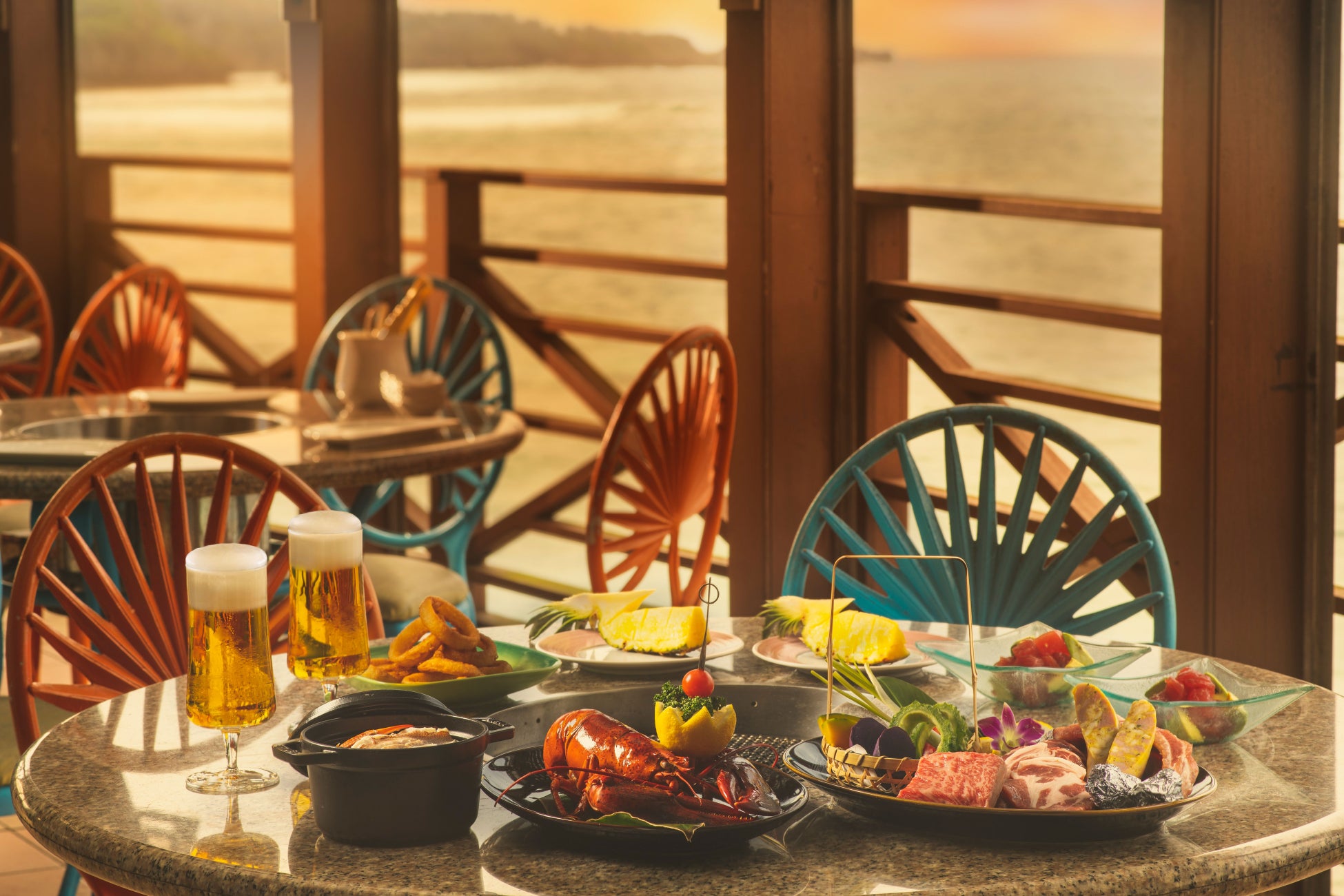 サンセットBBQや琉球炭火焼、寿司、和食、フレンチ&鉄板焼など、個性的な9ヶ所のレストラン&バー、山田温泉、タラソテラピーサロン、5つのショップが揃い、子どもから大人まで上質なリゾートステイをご堪能いただけます。