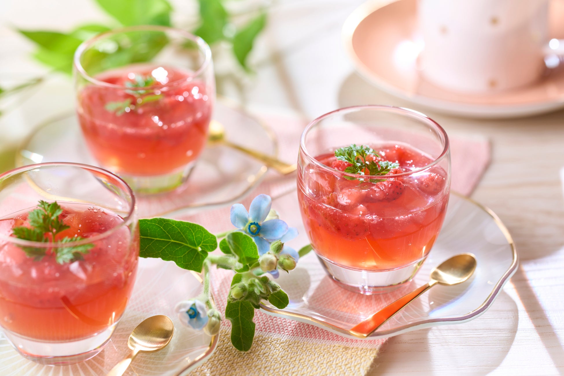 ぷるんと弾ける食感。「あまおう」の果汁を凝縮した、みずみずしく香り高い、春の季節にぴったりの贅沢なデザートです。