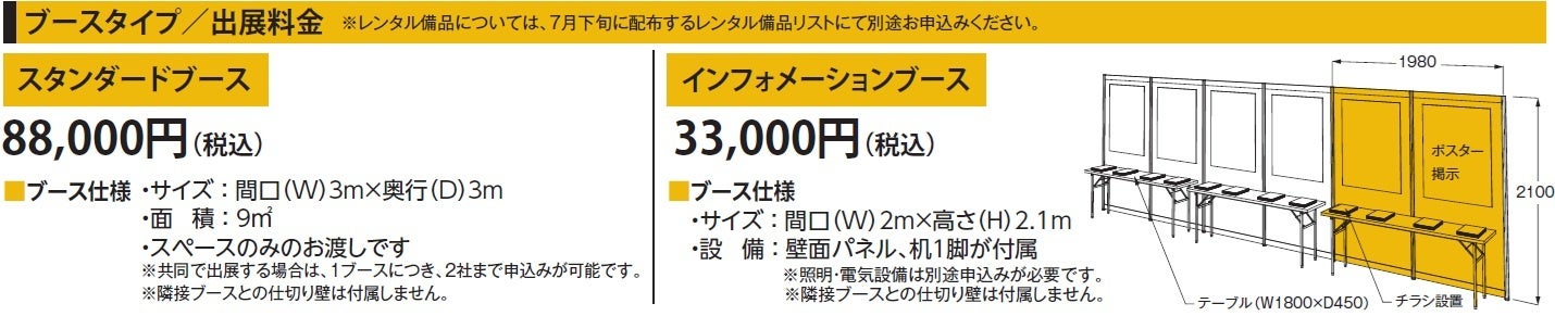 本年度よりブースは「スタンダードブース」「インフォメーションブース」の2種類からお選びいただく形式になり、よりシンプルになりました。