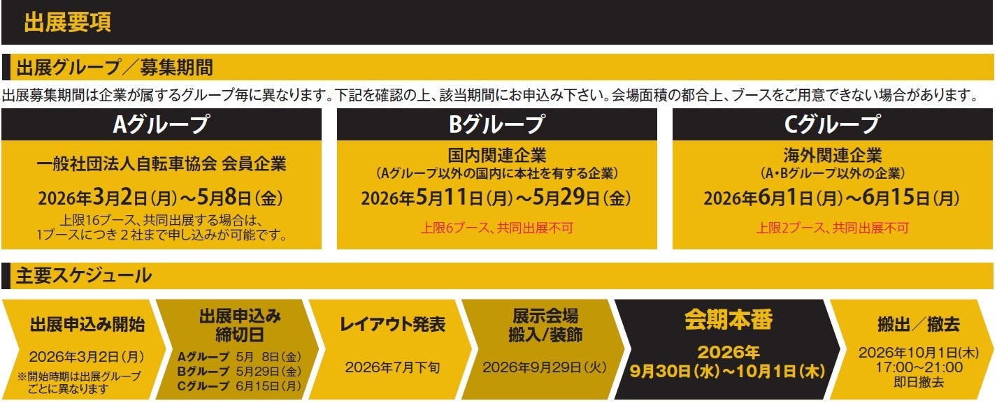 一般財団法人自転車産業振興協会(所在地:東京都品川区、会長:駒形哲哉)は、自転車産業のBtoB展示会『Japan Bike Show 2026』を2026年9月30日(水)、10月1日(木)の2日間、有明GYM-EXにて開催します。
