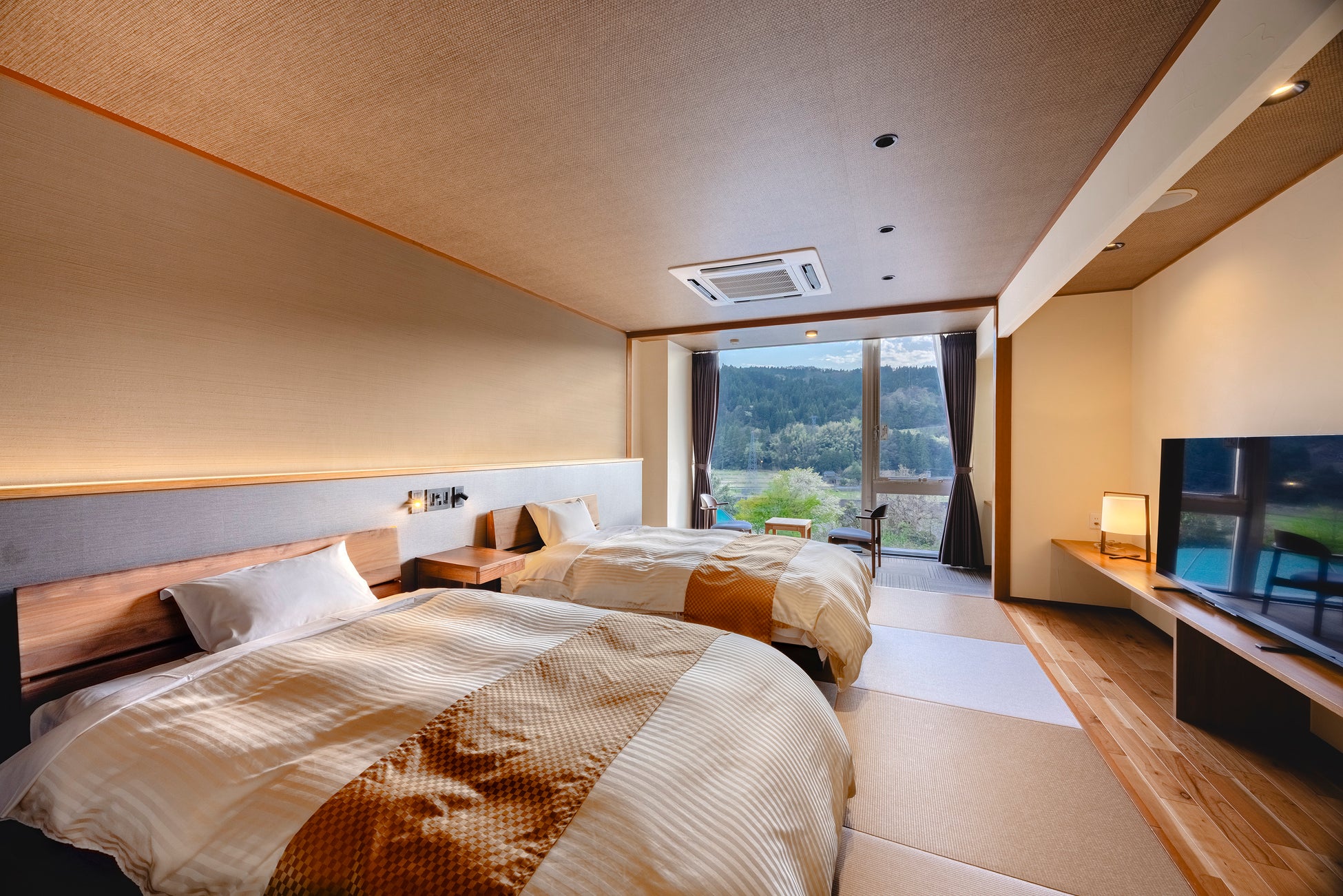「富の環」とは、富山の里山の自然、和食の原点を追求する当地の旬の手作りの食、肌に優しい弱アルカリ性の温泉。食べて、温泉につかって、眠って、目覚める。この一つひとつの“富”の体験が、里山の自然の中で、ぐるりと一続きの“環”となってお客様の五感が解放され心身の余白を取り戻せる滞在、又そのご滞在が富山の地域経済循環に貢献でき未来につながること、と意味づけています。