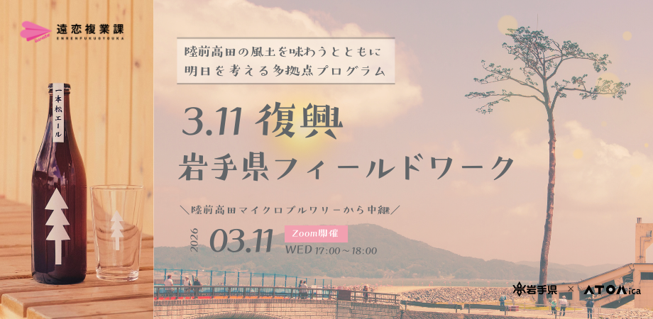 株式会社ATOMica(本社:宮崎県宮崎市、代表取締役Co-CEO:嶋田瑞生、南原一輝、以下「ATOMica」)は、岩手県が推進する「遠恋複業課」プロジェクトと連携し、2026年3月11日(水)に「3.11 復興 岩手県フィールドワーク ~陸前高田の風土を味わうとともに明日を考える多拠点プログラム〜」を共催いたします。