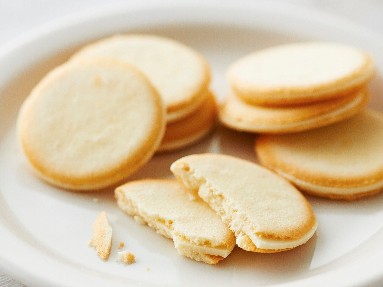 ルタオ一番人気のドゥーブルフロマージュと同じイタリア産マスカルポーネチーズを使用し、クリームチーズやルタオオリジナル生クリーム、バターを加えたクッキーでチーズチョコプレートをサンドしました。チーズの味わいが広がるコイン型のラングドシャ。