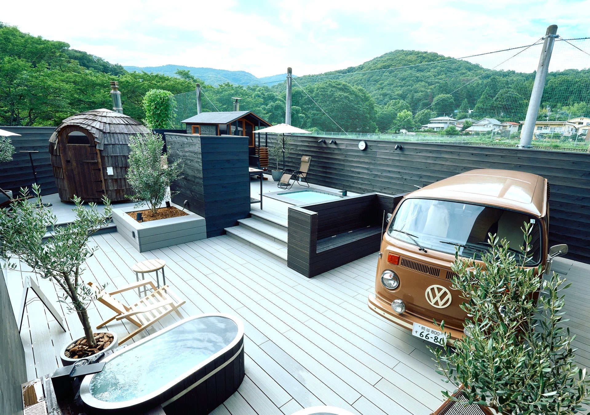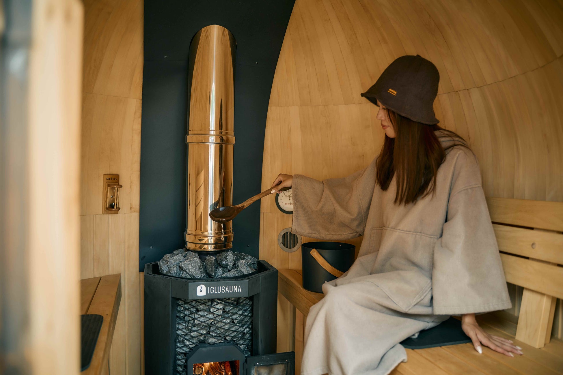 施設内には、貸切のプライベートサウナとしてエストニア製サウナの「イグルーサウナ」、フィンランドのサウナ小屋を再現した「サウナモッキ」を常設。みんなで入るパブリックサウナエリア「moku」には薪焚きストーブを搭載したサウナトレーラー「ASEMA」と、ワゴン車を改造した希少な「サウナワゴン」、「イグルーサウナ」と、2種の水風呂が備わっています。