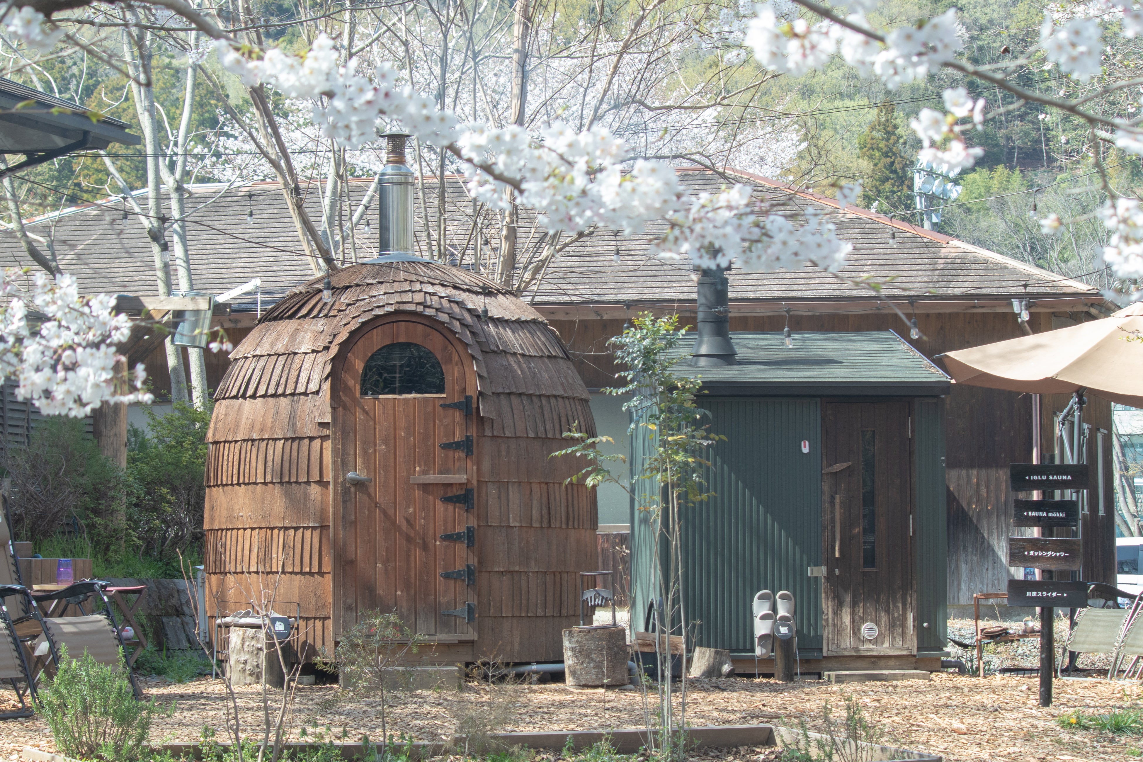 お花見しながら4種類のサウナと北欧流のサウナ文化、コモリバならではの清流と薪火を楽しむ7つのコンテンツをご用意しました。