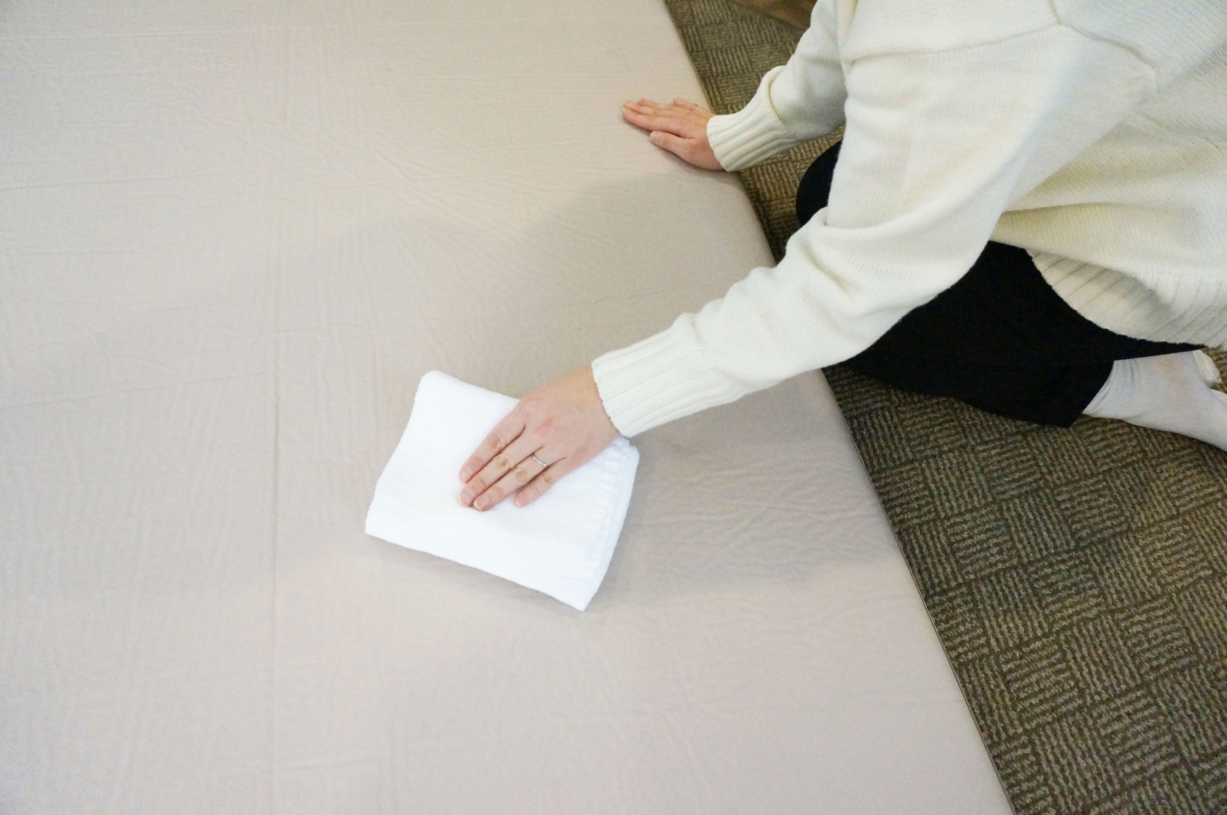 布団のように干す必要はなく、汚れが気になった場合はさっと拭くだけ