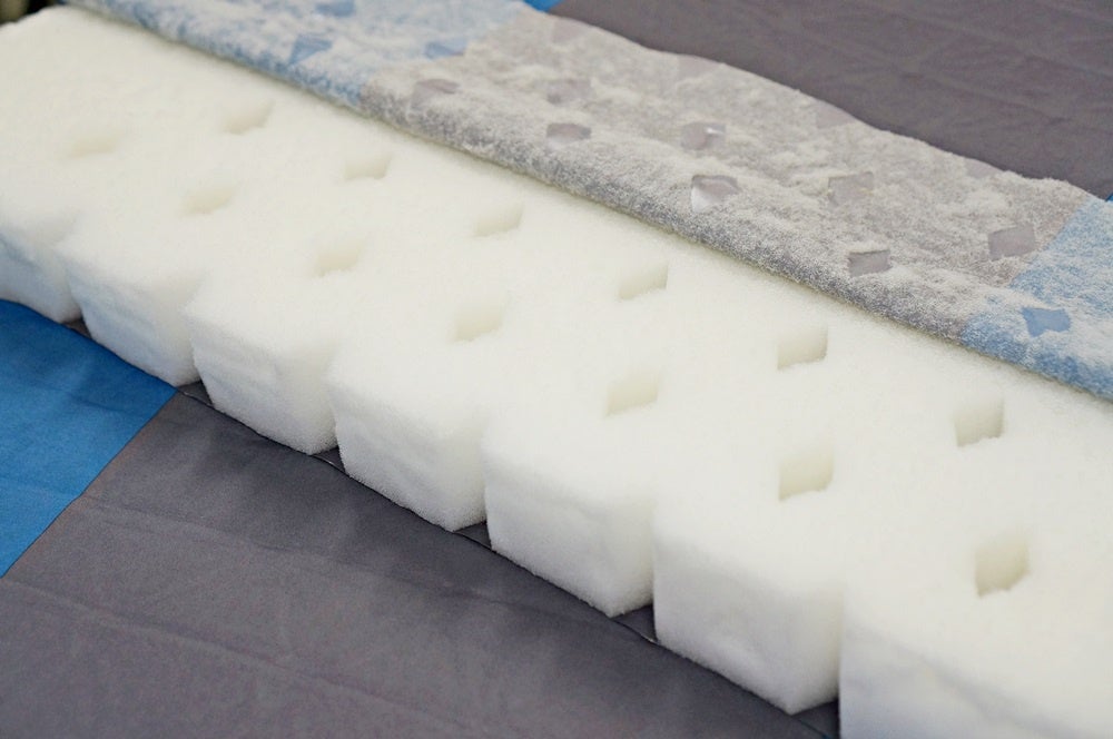 一方、インフレータブル構造のしきろーるんは、内部にウレタンフォームを内蔵。