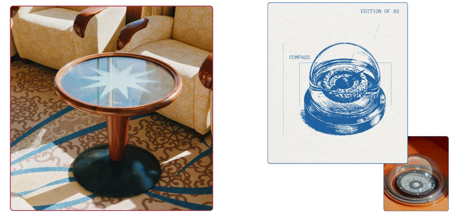 販売商品の種類は大きく2種類をご用意します。1種類目はにっぽん丸で実際に使用されていた品々を、そのままの形でオリジナル商品として販売するメモリアルグッズです。実際に船内のホライズンラウンジで使われてきたテーブルなどを含む35年以上の長い航海を共にした歴史を感じられる、思い出の詰まった本プロジェクト限定の記念品をご用意します。2種類目はにっぽん丸で使用されていた品々に加工を施し、日常で使える形へと生まれ変わらせたメモリアルグッズです。暮らしの中で航海の記憶に触れられる本プロジェクト限定制作のアイテムとなります。