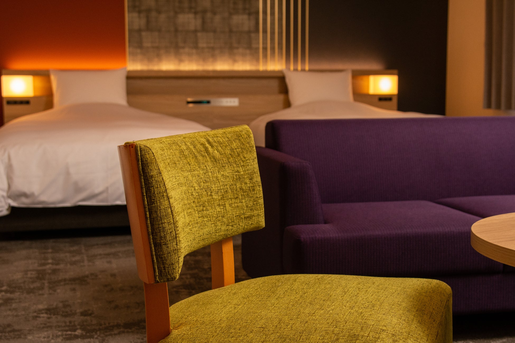 「武家屋敷」をコンセプトに、安らぎを感じられる和を取り入れたシンプルモダンなデザイン。加賀友禅に用いられる加賀五彩の華やかさをプラスしました。伝統的な色彩が奥ゆかしく、ゆったりとしたお時間をお過ごしいただけます。 70平米のラグジュアリースイートや、トリプル仕様にも変化し3名様でのご宿泊が可能なツインプラスのお部屋が家族旅行や女子旅に人気。