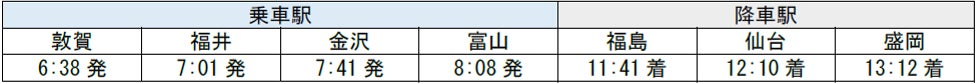 ※上記のほかに敦賀駅~黒部宇奈月温泉駅の各駅、郡山駅、一ノ関駅に停車します。