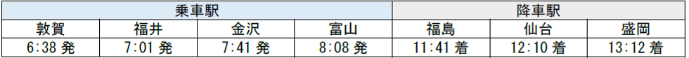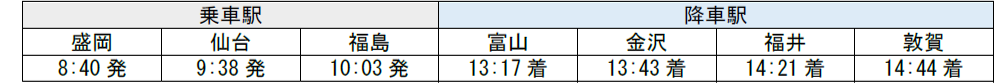 ※上記のほかに敦賀駅~黒部宇奈月温泉駅の各駅、郡山駅、一ノ関駅に停車します。