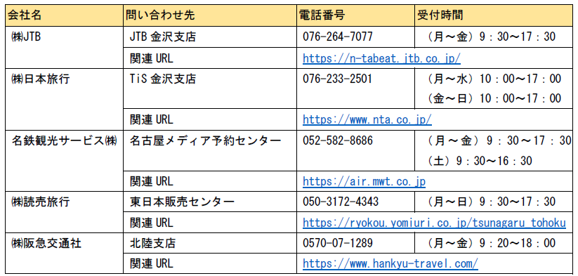 【列車名:「つながる北陸」号 運転区間:盛岡発敦賀行 旅行企画・実績会社および問い合わせ先】
