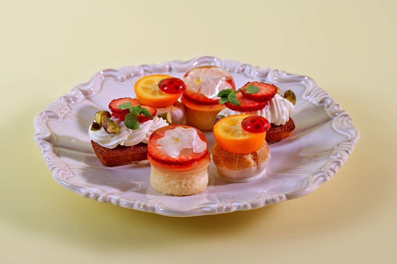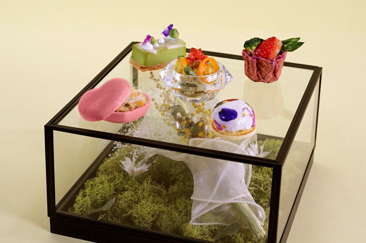 “花と香り”をテーマに、色とりどりの花と、オレンジフラワーやローズ、エルダーフラワー、ジャスミン、金木犀などの香りを掛け合わせ、五感で楽しむ春のアフタヌーンティーを演出。