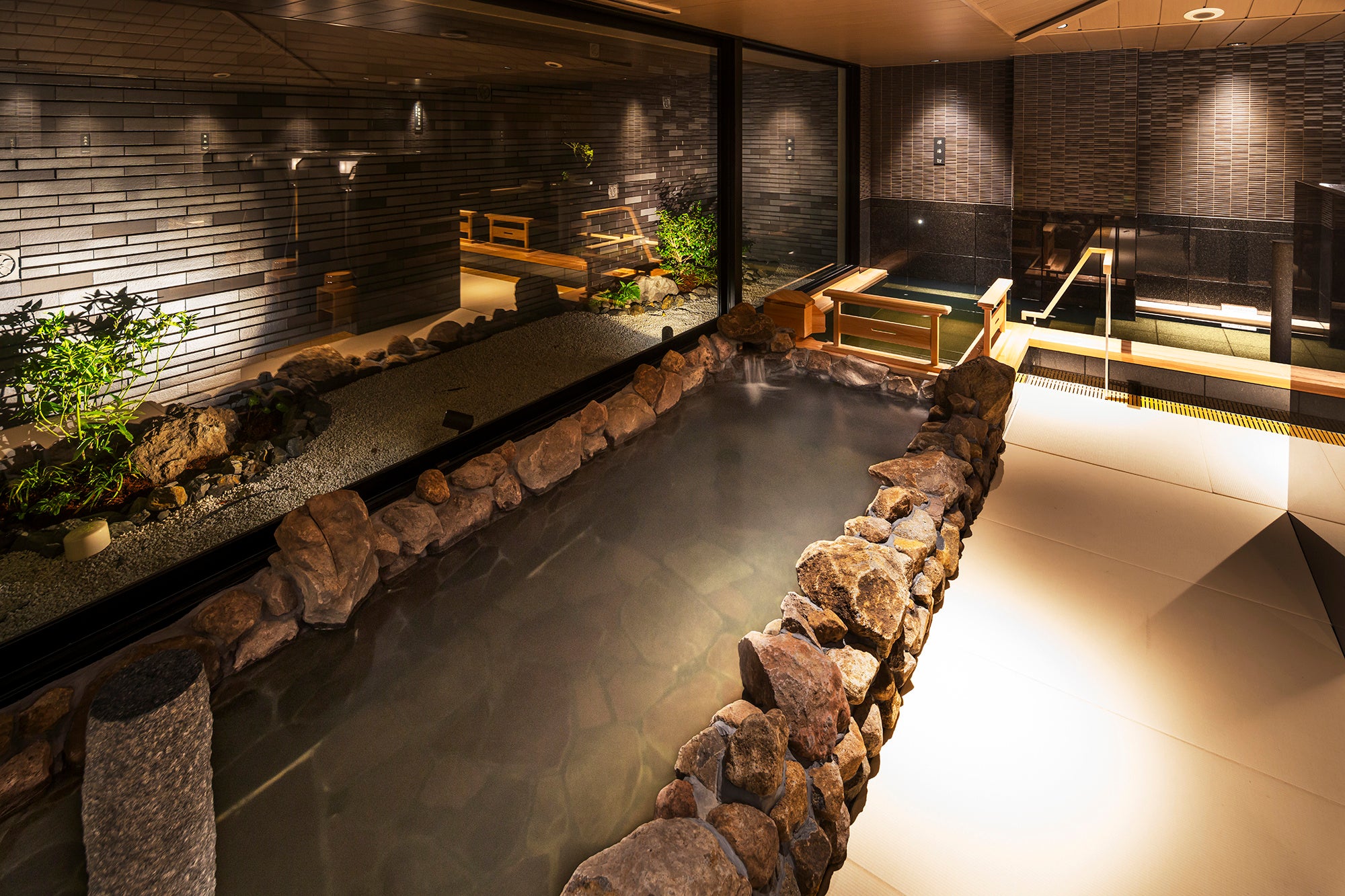 ・和のぬくもりに包まれた、静謐の湯処と、4つの無料貸切風呂を完備