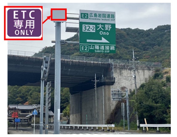 ETC専用料金所の運用開始に合わせ、インターチェンジ付近の高速道路本線及び一般道の案内標識に、ETC専用の標示板を設置し、ETC車でご利用いただく必要があることをお知らせします。