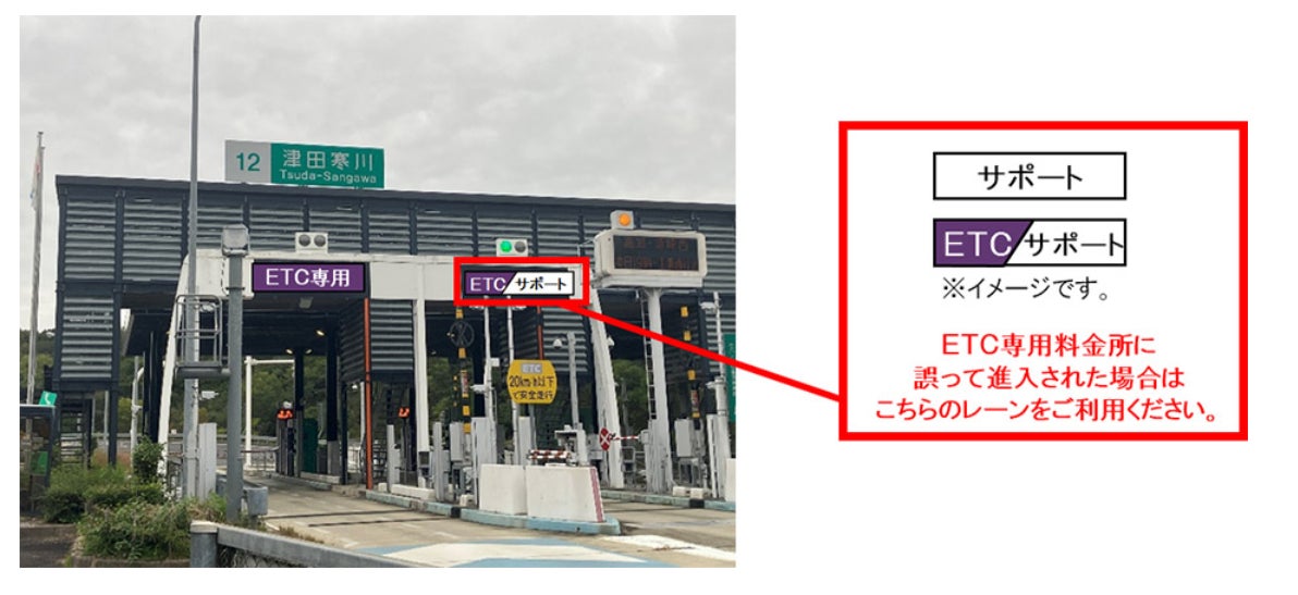 ってETC専用料金所をご利用された場合は後退・転回せずに、「サポート」又は「ETC/サポート」と