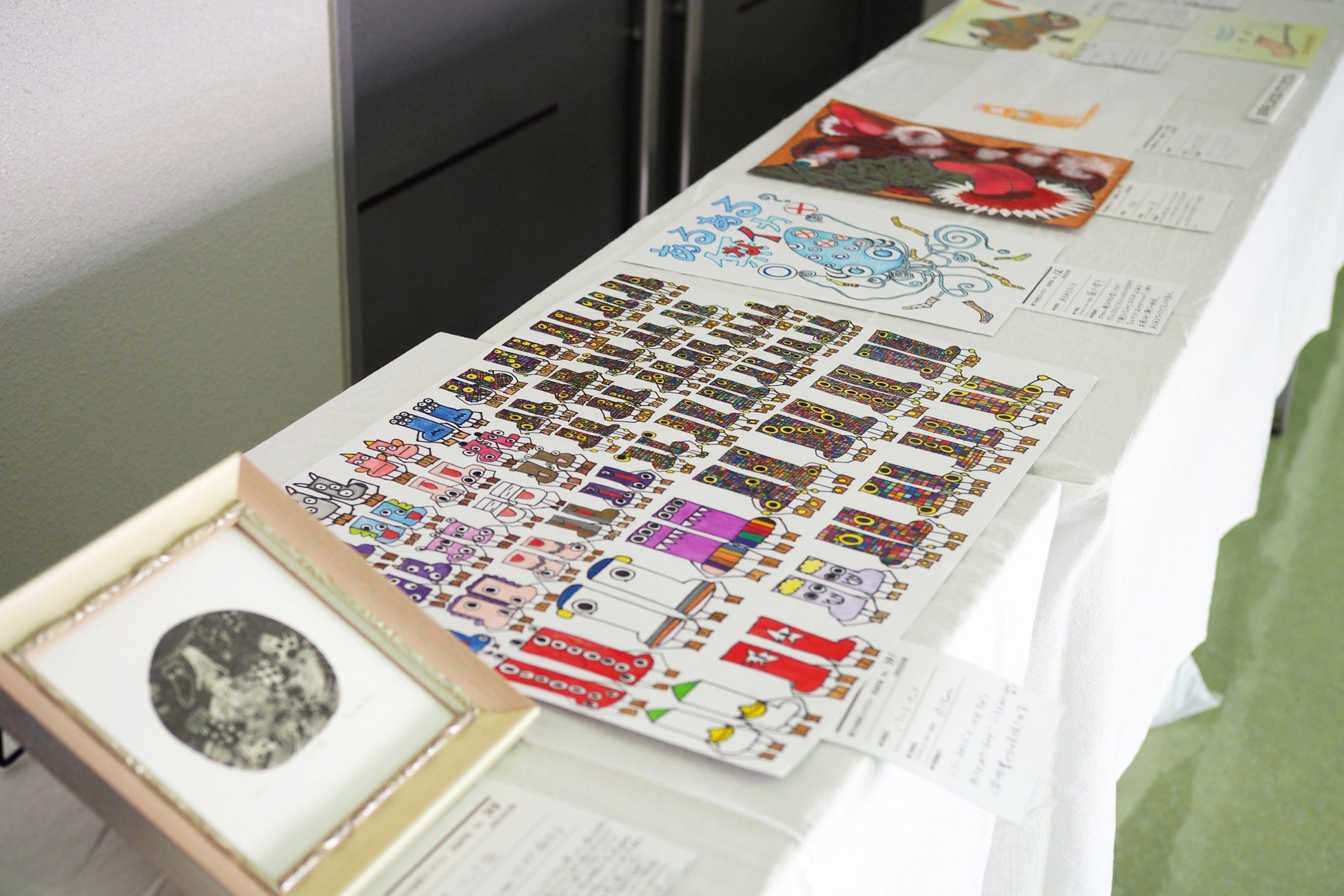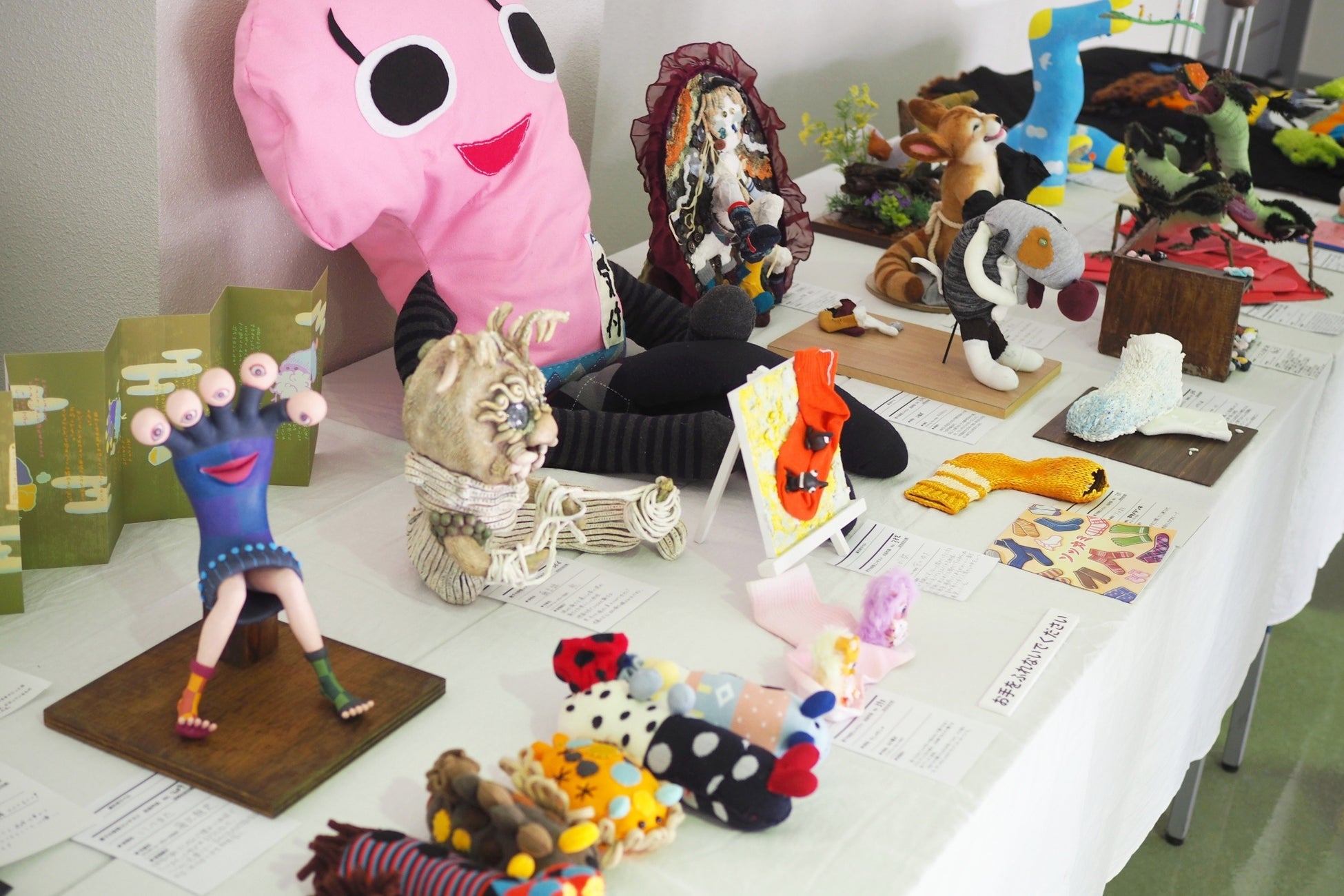 イラストなどの平面作品だけでなく、布を縫製した立体造形作品など創意工夫のオンパレード