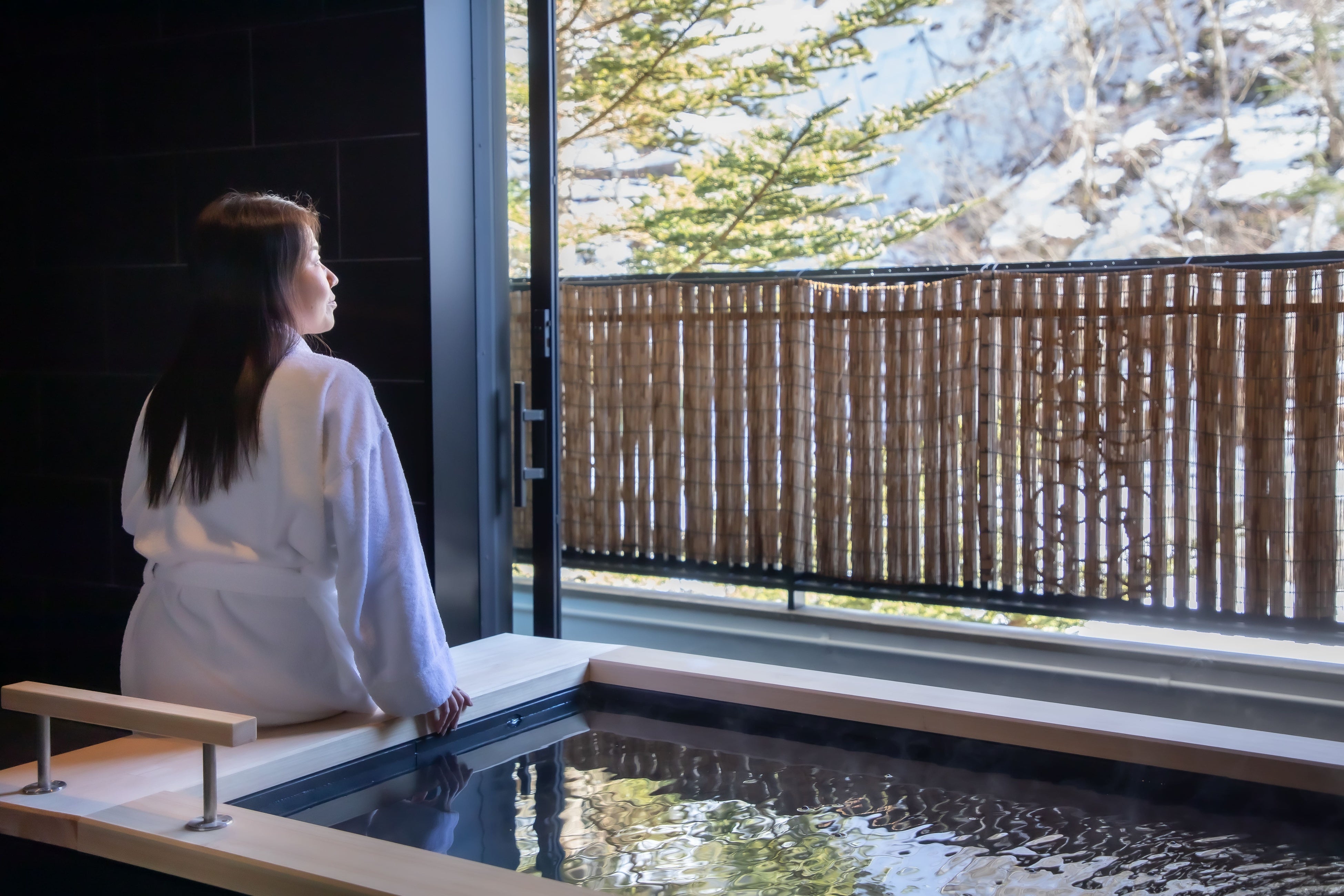 冬でも冷えを感じずに心地よく利用できる客室露天風呂