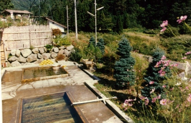 眼前に高社山、遠く北アルプスを望む絶景の湯は“望郷の湯”と称され、冬の“雪見風呂”でも知られています。泉質は弱アルカリ性単純温泉で、肌あたりがやわらかく“美肌の湯”としても人気でした。