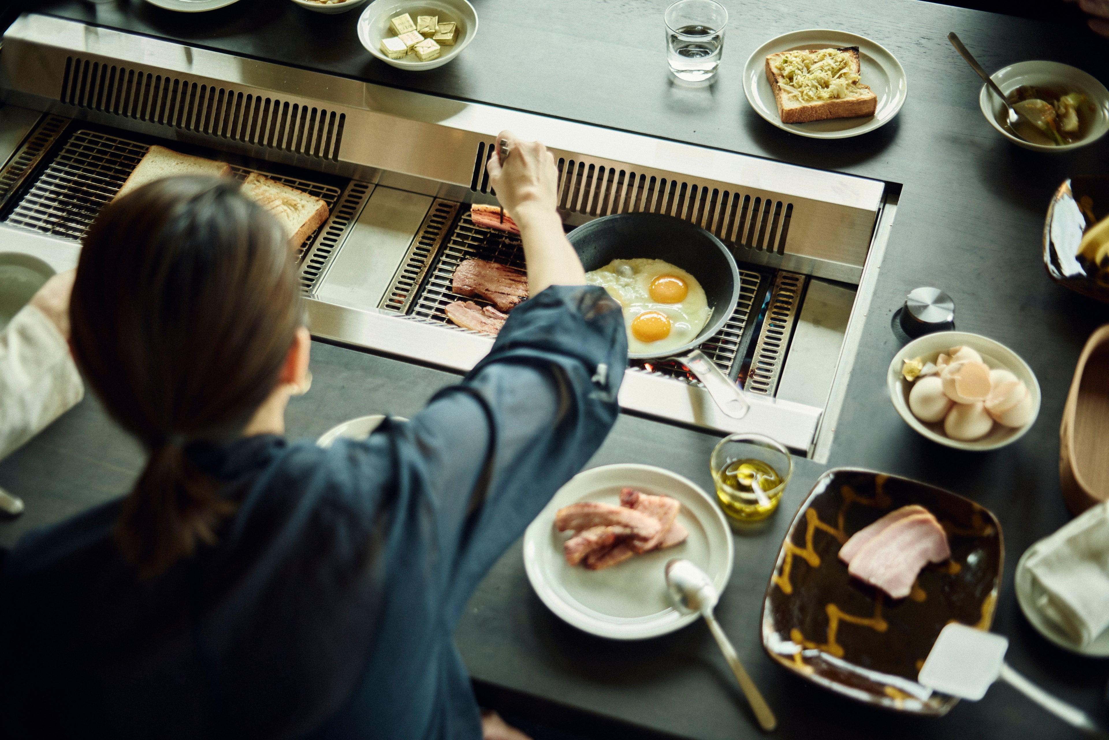 近年、一棟貸しのバケーションレンタルやキャンプ、BBQなど、仲間や家族と火を囲む滞在スタイルが広がっている一方で、設営や準備に時間を要したり、天候や季節に左右されたりと、「火を囲む時間そのもの」をゆったりと楽しむことが難しい場面もあります。本施設はこうした課題に着目し、火を囲む時間をもっと快適に、もっと長く、もっと深く味わえる場を追求しました。そこで、日本の伝統的な囲炉裏をラウンジのようにくつろげる高さと設えにアップデートし、天候に左右されないリビングの空間の中で、ソファやラウンジチェアで囲む設計としました。これにより、準備や撤収に追われることなく、火と食事と会話に没頭できる環境を整えました。食材に火を入れる時間と語らう時間が自然と重なり合うことで、宿泊された方にとって特別な団欒の時間を創出します。