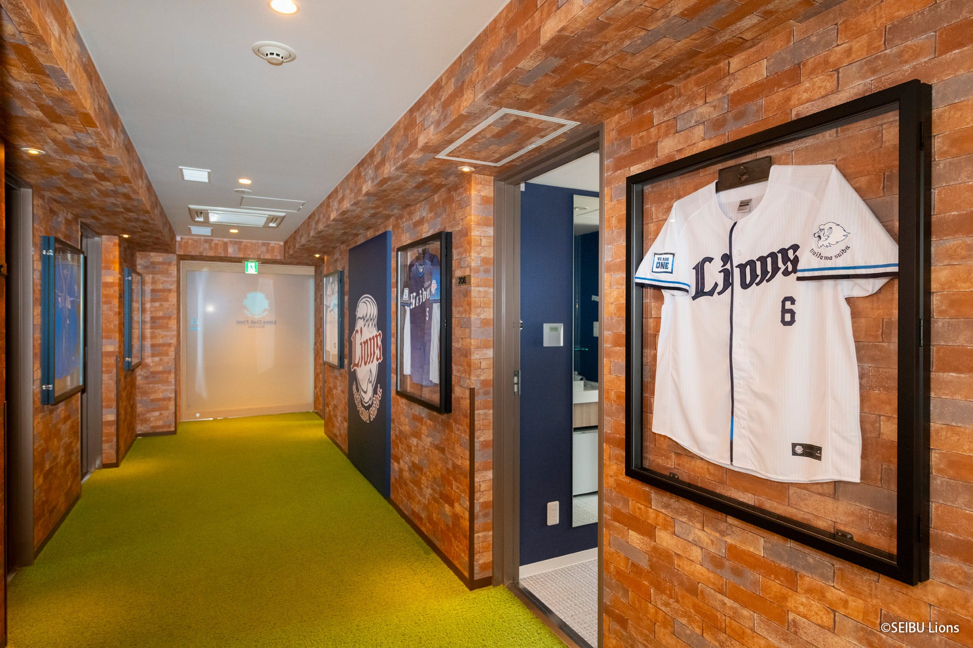 専用フロアを有する、「ライオンズクラブルーム・プレミアム」と称する6室には、各部屋ごとに埼玉西武ライオンズの選手が壁一面に印刷されているコンセプトルームとなっております。