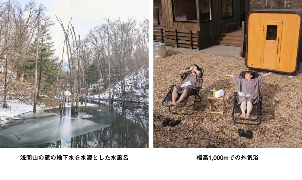 特徴③:浅間山北麓、「天然水 × 標高1,000mの外気」でのととのい体験