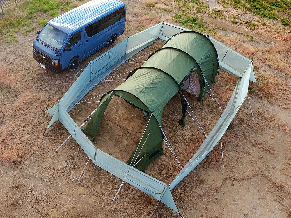 通常のテントやタープに加えて設営が必要となるため、極力スピーディーに設営できる構造にこだわりました。