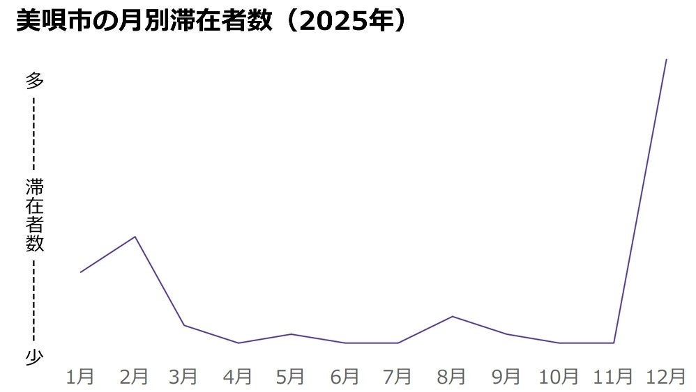 美唄市は12月に滞在者数が多い結果となりました。