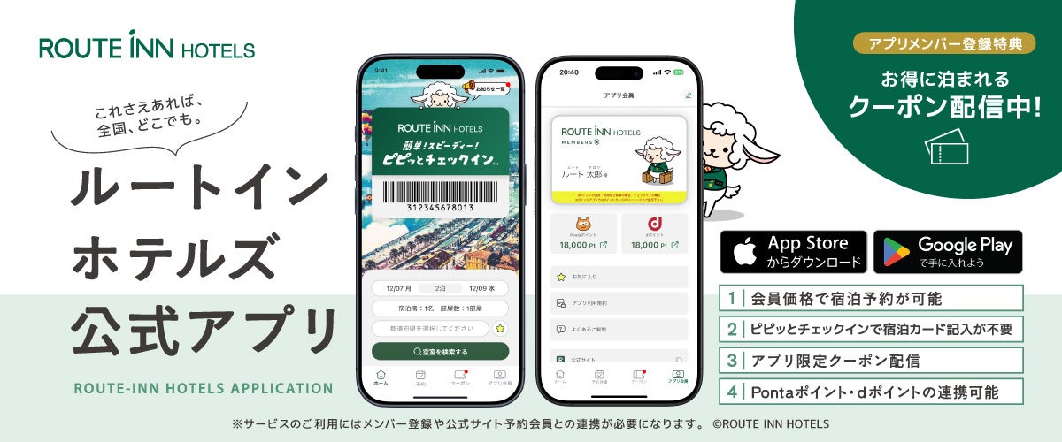 この機会に是非ルートインホテルズ公式アプリをご利用ください。