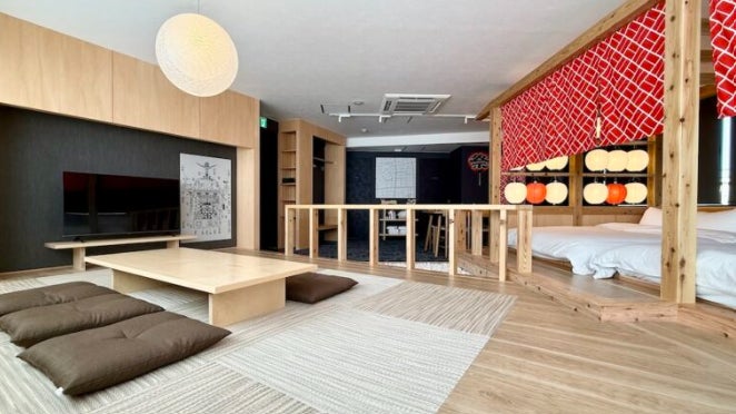 同施設は東京・中野新橋に位置し、海外から日本を訪れる観光客にも日本文化を楽しんでもらえるよう設計された、インバウンド対応の宿泊施設です。日本各地の祭りをテーマに、五感を刺激する演出や空間づくりを取り入れており、訪れる人が一年を通して日本の伝統文化や祭りの雰囲気を体感できるようデザインされている点が特徴です。