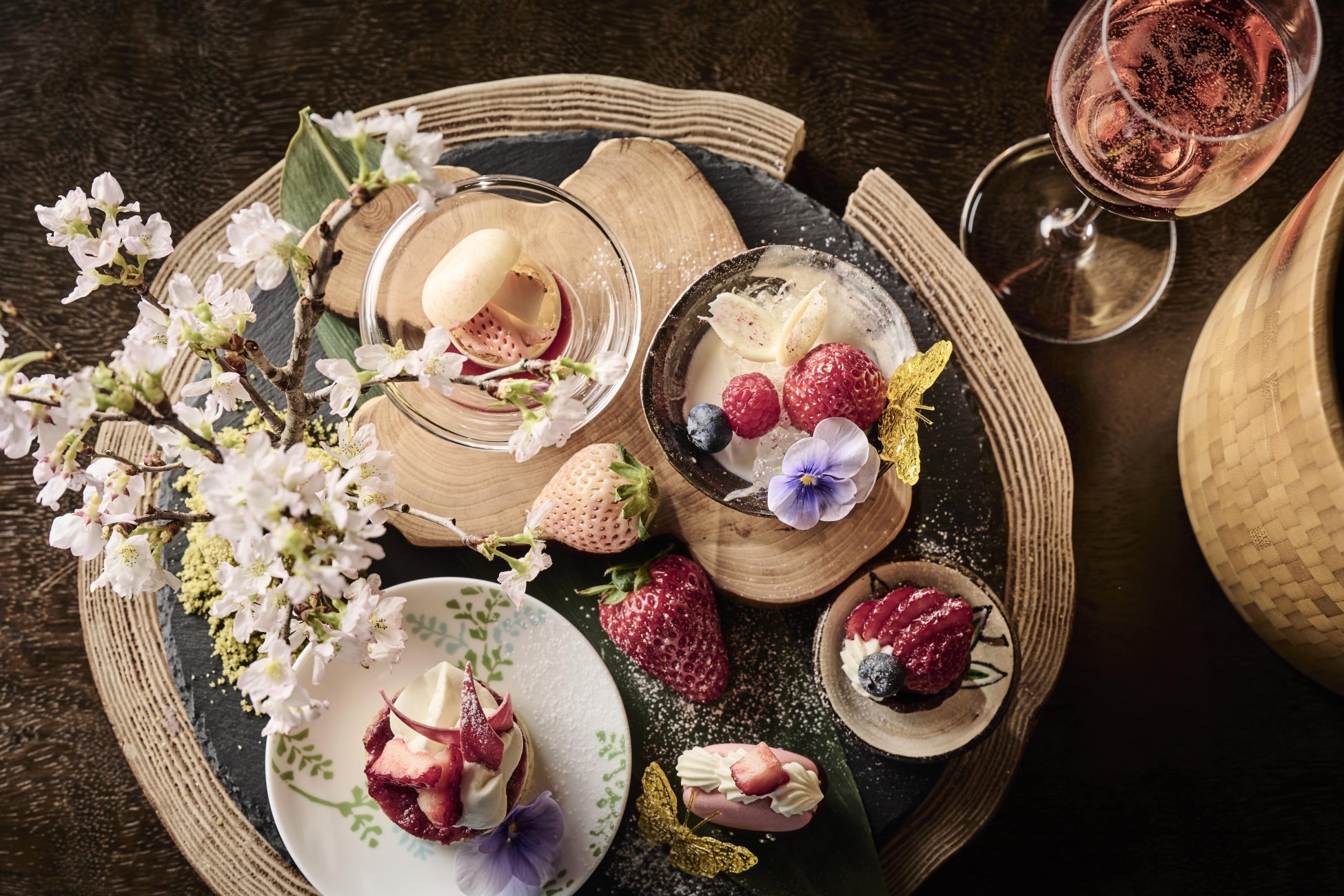 本プランの主役は、京都産いちごを中心としたプチアフタヌーンティー。フレッシュないちごをはじめ、マカロンやタルト、プチケーキなど、パティシエ特製の春スイーツを一口サイズでご用意いたします。夕食前でも軽やかに楽しめる、上品なボリューム感です。