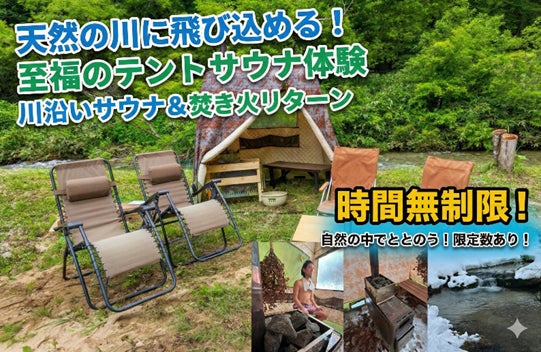 【体験1】大自然を完全貸切。清流へダイブする「時間無制限テントサウナ」