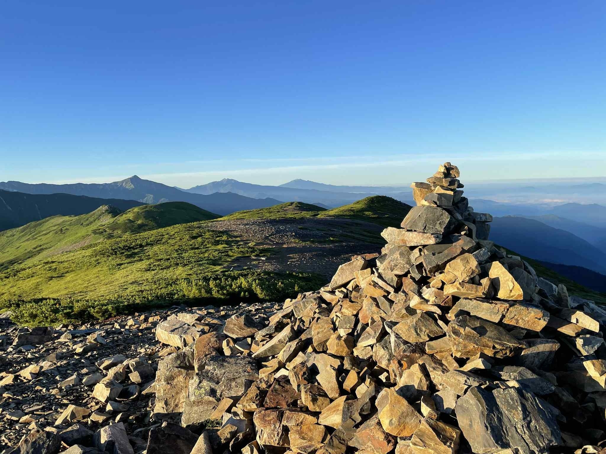 北アルプスの主要な峰々を一望できる北ノ俣岳山頂