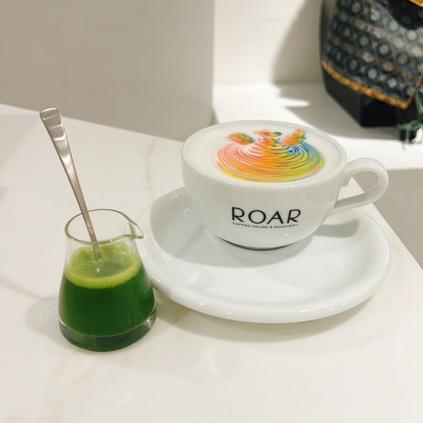 抹茶マシンは、目の前で茶葉を挽き、点てる様子を楽しんでいただけるよう、あえてカウンター上に設置しています。動く様子を動画で撮影される方も多く、コーヒーと同様に抹茶にも「本物」を追求する姿勢が伝わっています。