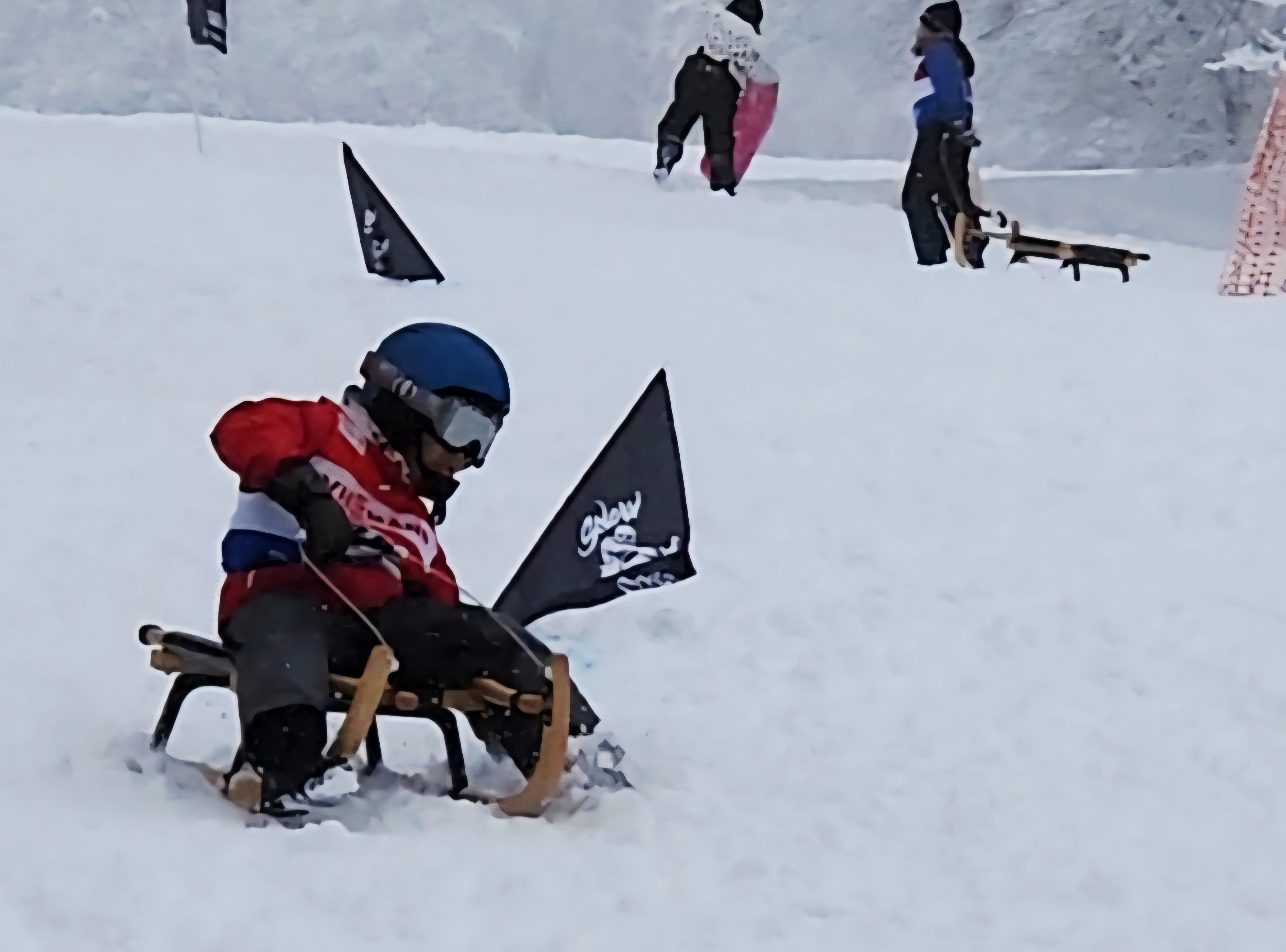 「ウインタースポーツフェスティバル」において、木製ソリを使用した雪上スポーツ