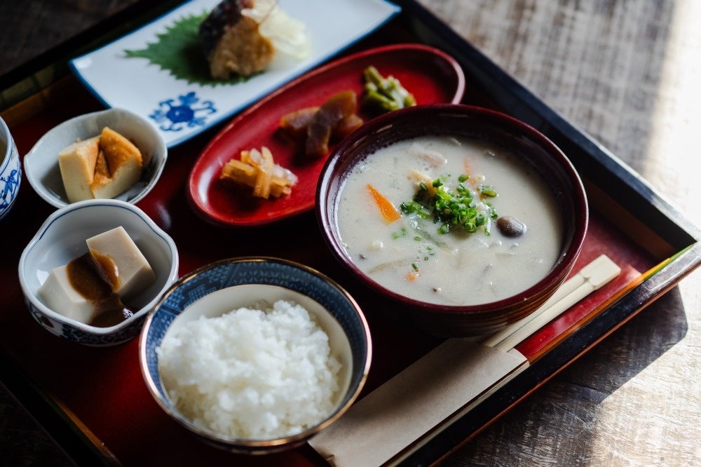 馬木バス停から徒歩約5分の場所には、島で唯一の酒蔵「小豆島酒造」があります。酒粕を使った奈良漬や粕汁など、「杜氏のまかない飯」はランチにおすすめです。