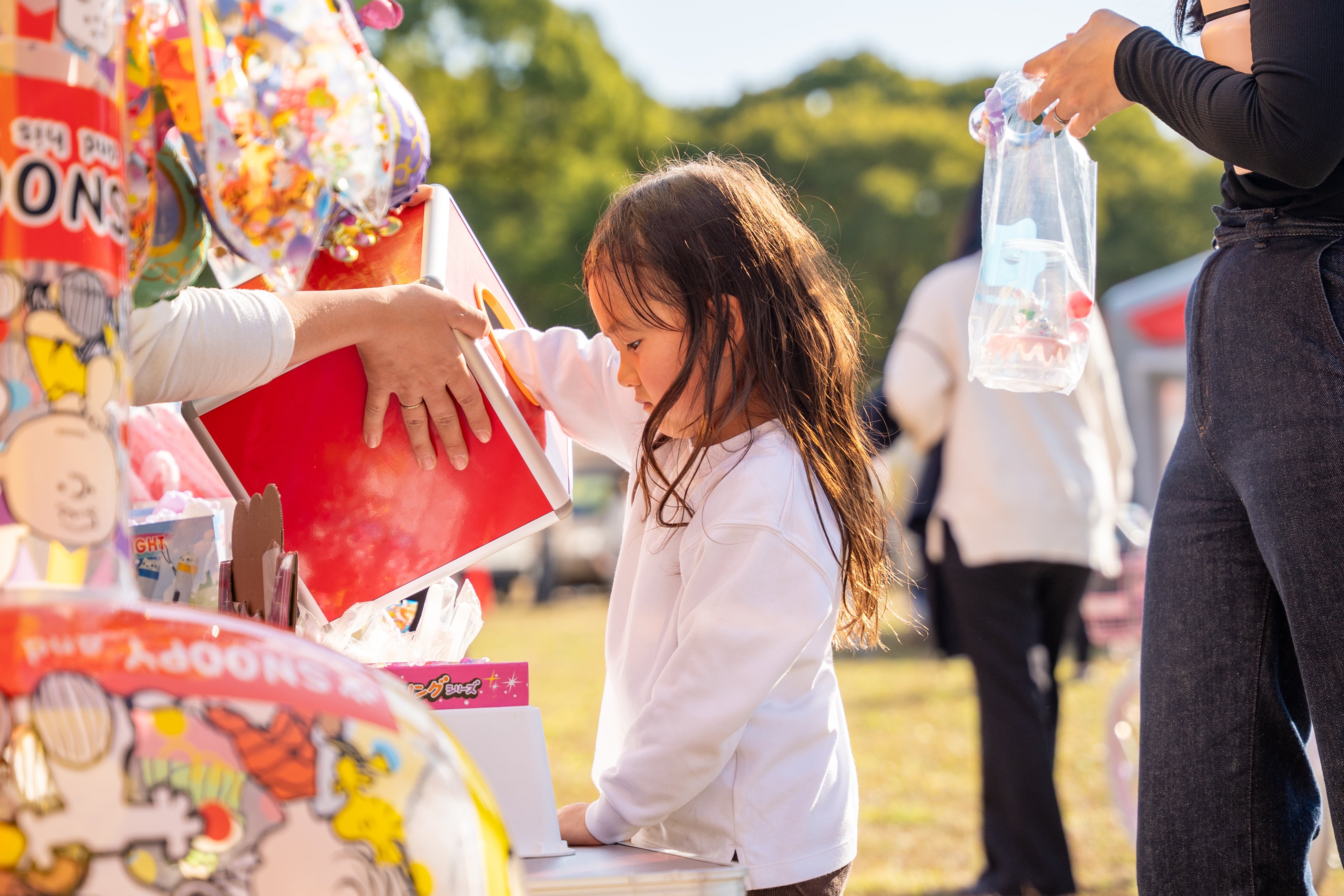 スーパーボールすくい、くじ引きなど、親子で楽しめる縁日でお祭り気分を味わえます。キラキラ光るスーパーボールが水にぷかぷか浮かんでいるだけで、まるで宝石の池みたい!子どもも大人も、ついつい夢中になっちゃいます。「何が当たるか…。」その緊張感と期待感が魅力のくじ引きで豪華景品をGETしてください!