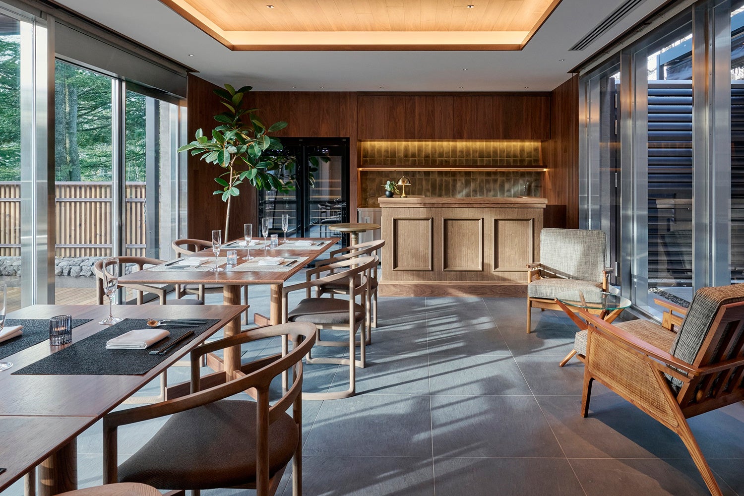 「GLAMDAY STYLE HOTEL SUITE 山ノ麓」以外にも、旧軽井沢エリアに佇むグループ施設「GLAMDAY STYLE HOTEL SUITE 川ノ音」など軽井沢で多数のプロジェクトを展開しております。スモールラグジュアリーリゾート「ふふ 軽井沢 陽光の風」と「ふふ 旧軽井沢 静養の森」をはじめに、「GLAMDAY STYLE」シリーズのシェア別荘、ライフスタイルホテルとして「TWIN-LINE HOTEL KARUIZAWA JAPAN」、「GLAMDAY STYLE HOTEL&RESORT KYU-KARUIZAWA」が存在するほか、信州の食材で作るスペイン王室御用達のレストラン「José Luis(ホセ・ルイス)軽井沢」や「つるとんたん UDON NOODLE Brasserie 軽井沢」も運営しております。