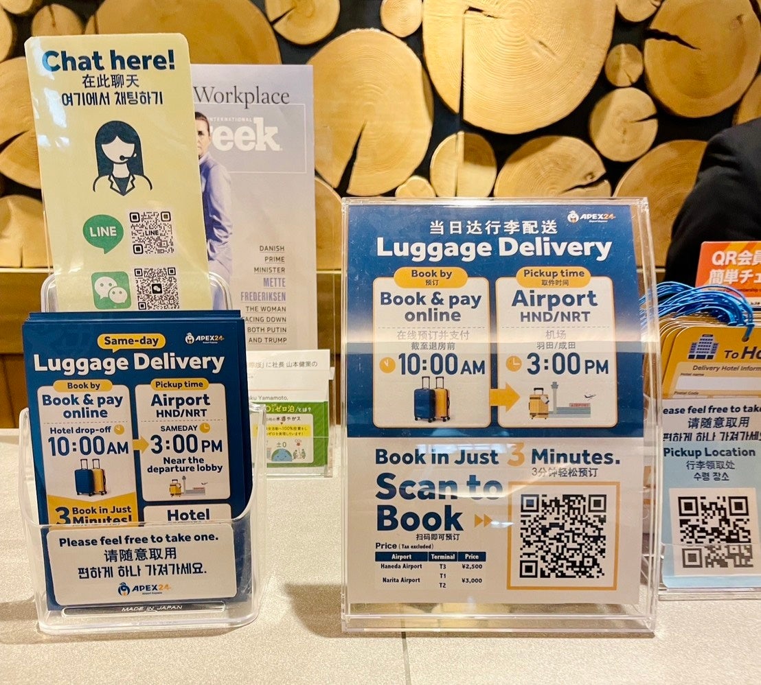 スーパーホテルpremier東京駅八重洲中央口・銀座店において、当日手荷物配送サービス「APEX24」導入