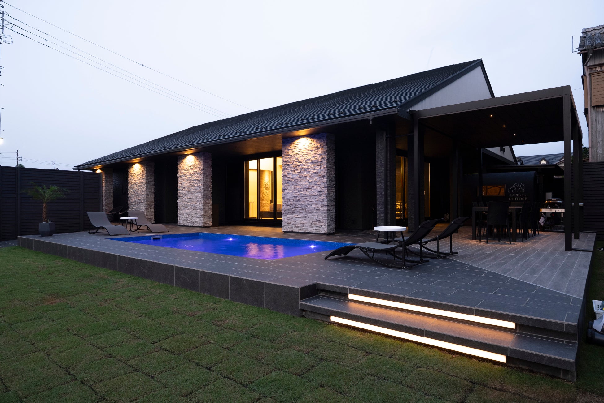 敷地内には、本格的なプライベートサウナと愛犬と一緒に楽しめるプールを完備。ラグジュアリーなプライベートプールは自分たちだけの空間で、リゾート気分を満喫できる特別なひとときを演出します。プールはサウナ利用時の水風呂としても活用でき、温冷交代浴による心地よい「ととのう」体験を実現。さらに、ロウリュも楽しめる本格仕様のサウナは、家族や仲間とゆったり過ごすのに最適です。