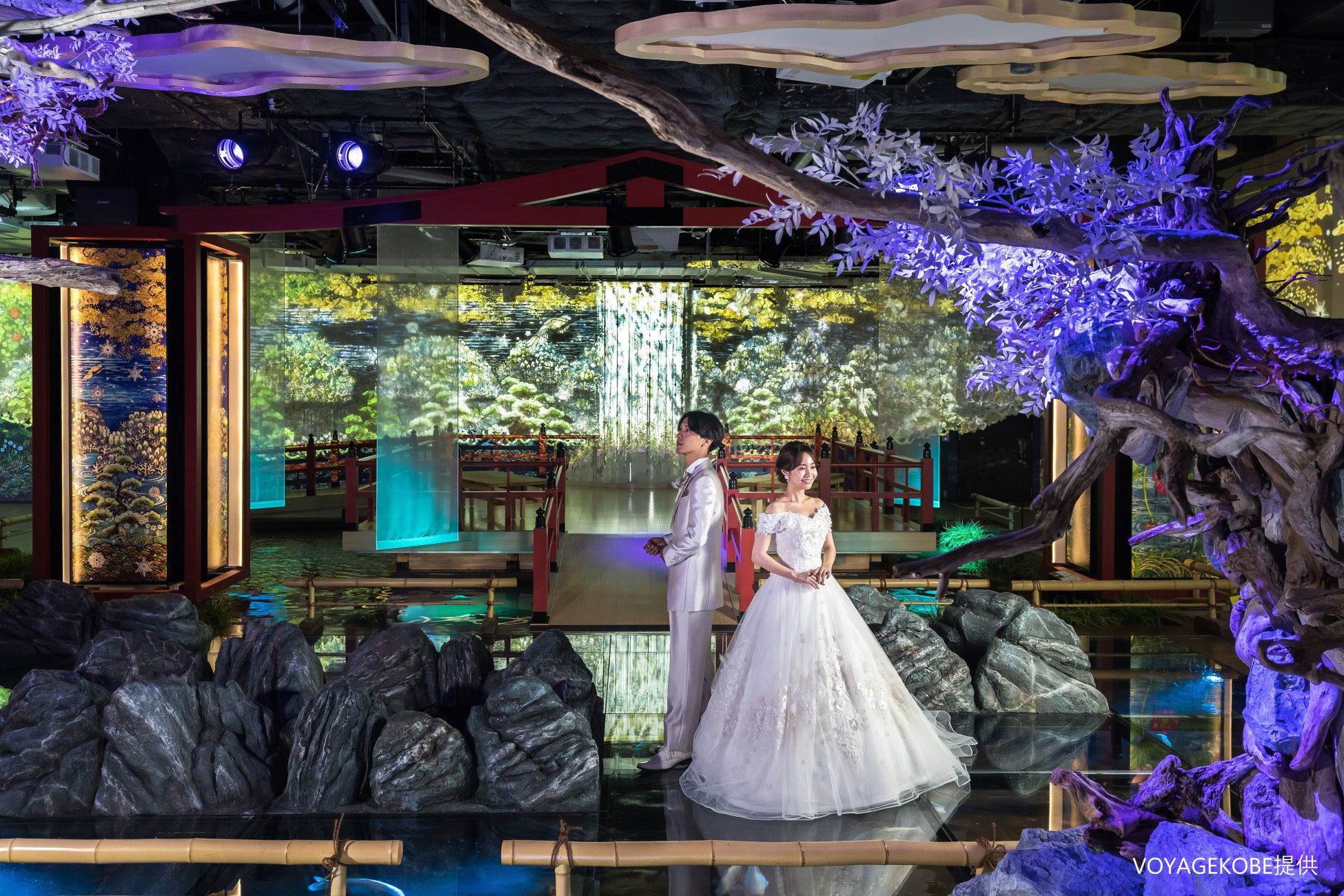 水族館とアートが融合する独創的な世界観が魅力のアトアと、ホテルオークラ神戸の双方での撮影が叶うフォトウエディングプランをご用意しました。アトアでは、無数の星に包まれる惑星をイメージした”PLANETS”や、光の切り絵を投影し、和空間を演出する”MIYABI”など、水槽と光がシンクロした個性溢れる空間を舞台に撮影を行います。