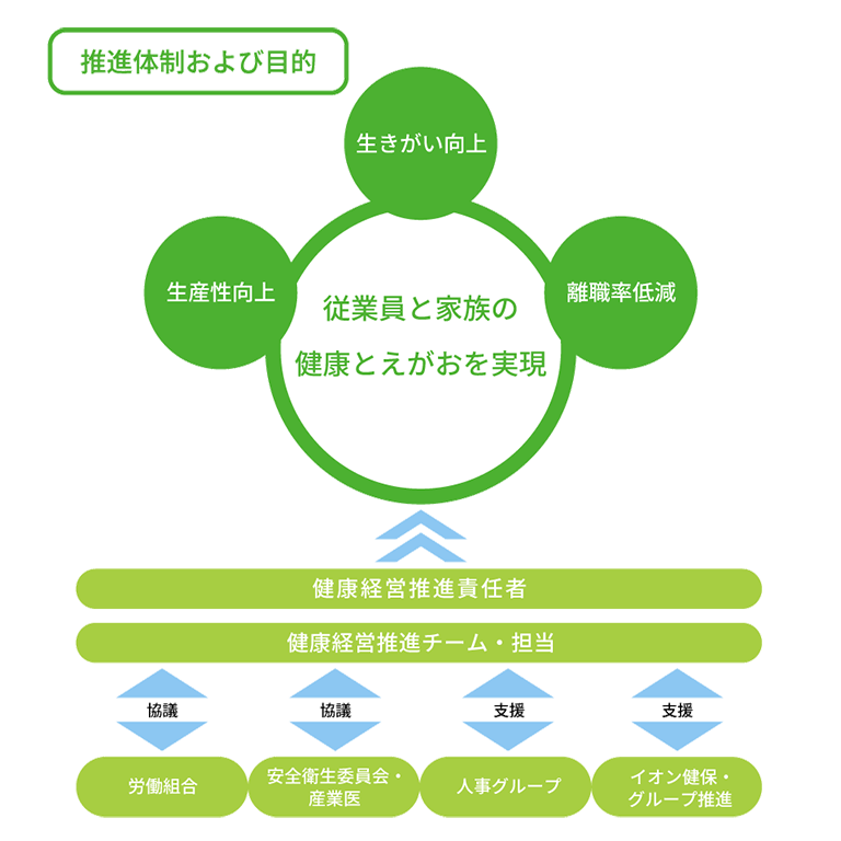 イオンファンタジーは、上記の健康経営宣言のもと、健康経営の推進に取り組んでいます。