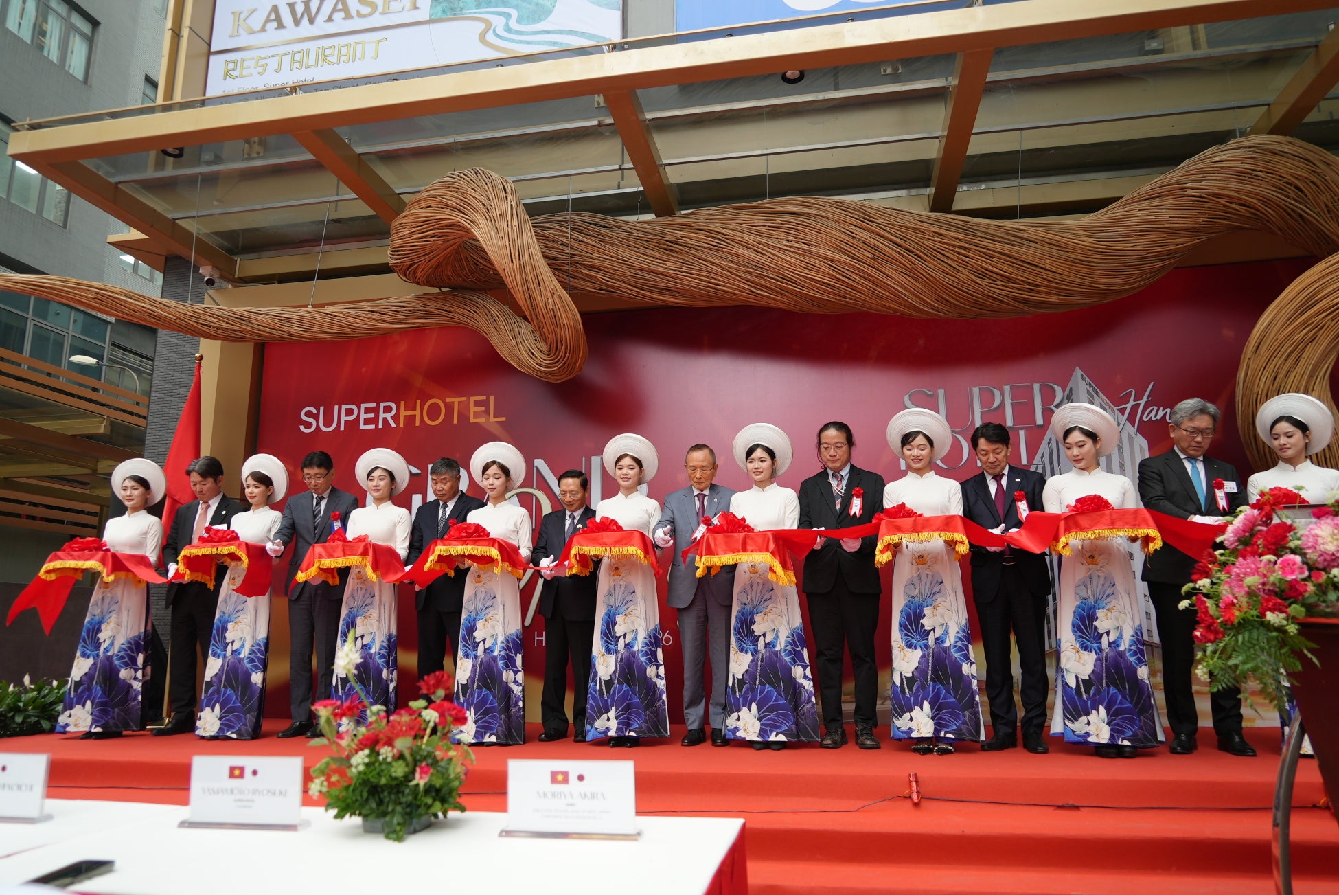 2026年3月5日(木)に開催されたオープンセレモニーでは、株式会社スーパーホテル 取締役会長 山本梁介、代表取締役社長 山本健策が参加したほか、越日友好協会 副会長 ブイ・カック・ソン氏、在ベトナム日本国大使館 公使参事官 渡邊 貴和氏にもご臨席いただきご祝辞を賜りました。