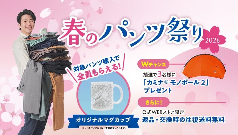 株式会社finetrack(代表取締役:金山洋太郎)は2026年3月10日(火)より、キャンペーン実施店舗にて対象パンツ購入のお客様にオリジナルマグカップをプレゼントする「春のパンツ祭り2026」を開始しました。