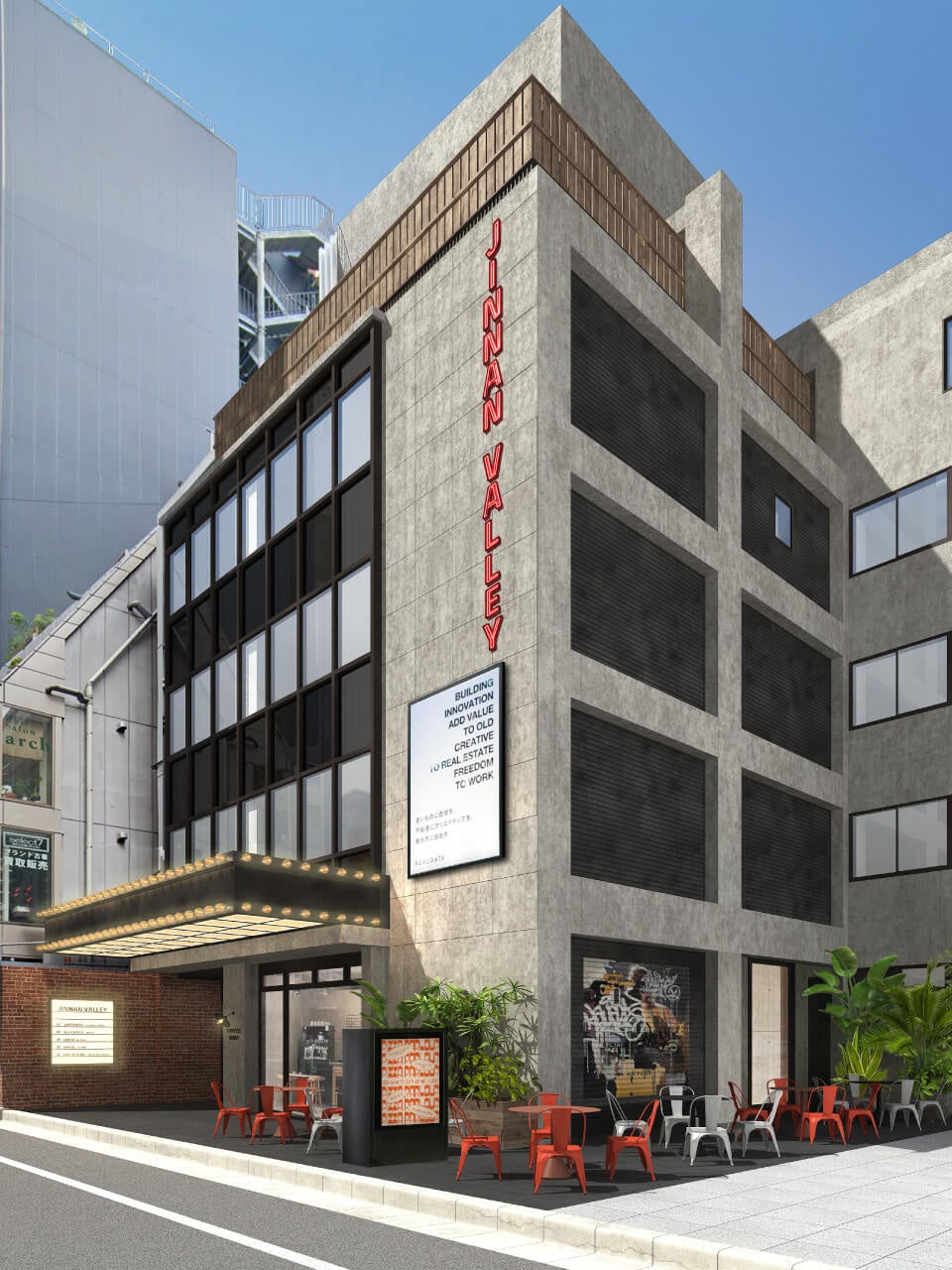 渋谷・神南の築50年ビルをショップ×オフィス×ホテルの多機能拠点へ。複合施設「JINNAN VALLEY」2026年4月開業