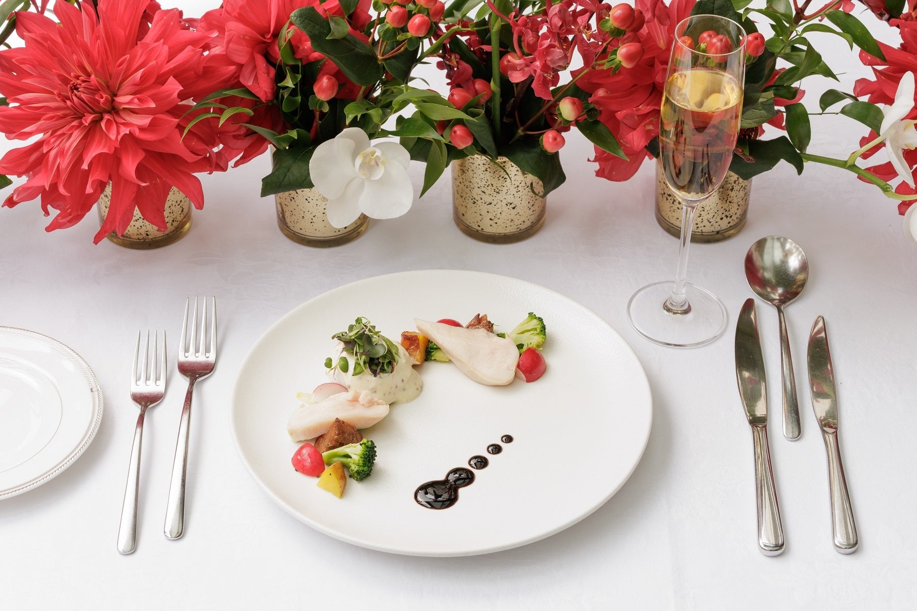 会場:ストリングスホテル 名古屋/1F「グラマシースイート」コース内容:ファーストディッシュ ・前菜 ・メイン・デザート ※季節によりメニュー内容が異なります