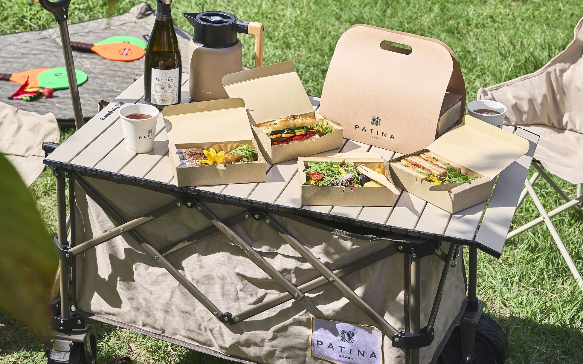 またパティーナ大阪では、お花見にぴったりのピクニックセットもご用意しています。シェフ特製のサンドイッチセットや、こだわりの素材を使ったスイーツやベーカリーもテイクアウト可能です。これらのピクニック関連アイテムは、1階の「P72」にてお求めいただけます。